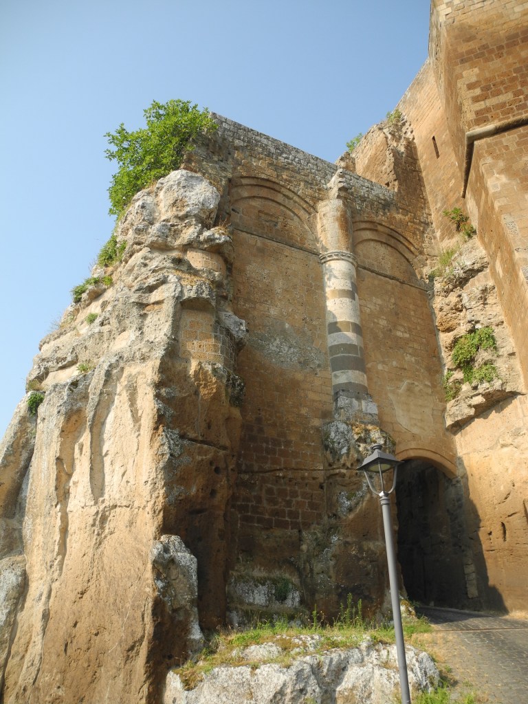 In 1874 Olave Potter’s view of Orvieto in A Little Pilgrimage in Italy was, to say the least, disastrous. “The grim Porta Maggiore, (now the favorite refuge of pigeons) where Boniface VIII in his twofold tiara, keeps watch from his niche above the gateway . . . Through this gate hastened the Popes, fleeing from wrath to come, and in their footsteps we toiled up the steep street between the same houses of yellow volcanic tufa gone black. Through dark alleys we could see the gloomy depths of caves, hollowed out of the living rock behind them: in the low bassi the citizens of this broken city toiled silently, and outside their doors sat hooded owls on poles driven into the stony ground . . . There are some streets in Orvieto which look as though war had stalked through them only yesterday; as though the terror-stricken Ghibellines still cowered within doors, while the Monaldeschi rang bells in triumph, as they did on that fateful day in the year of grace 1312, when the Filippeschi had tried in vain to open the gate of the city to Henry VII of Luxemburg.”