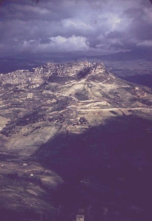 Enna particularly belonged to another world. From a distance, it was El Greco’s Toledo with menacing clouds hanging low. The wind threatened to sweep me off the cliff and when dressing for the day I had to add a long-sleeved woolen undershirt and knee-length underpants over my ordinary underwear. The other cities were timeless. Enna was left over from its medieval past, the dry skeleton of an organism that died of hunger. The stones held up well against the gales that seemed to meet here in the center of Sicily. There was an intensity of feeling in the Crucifix in the Cathedral where real hair had been used for the hair of Christ. There was an agony in this tortured figure that somehow echoed that inspired by the unforgiving mountains.
