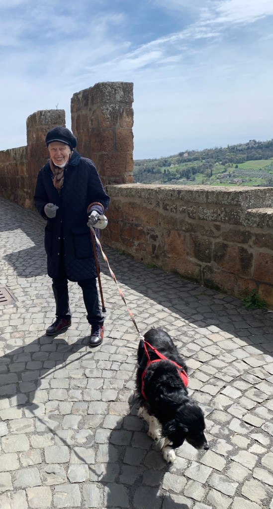 The country in the midst of the woods, with its view of Orvieto, eventually became too much for me. It was getting dangerous walking down the gravel driveway. And then as I turned 90 it was decided I would be better off in town, near my sons. I was too isolated in the country. Teah would just have to become a city dog.
