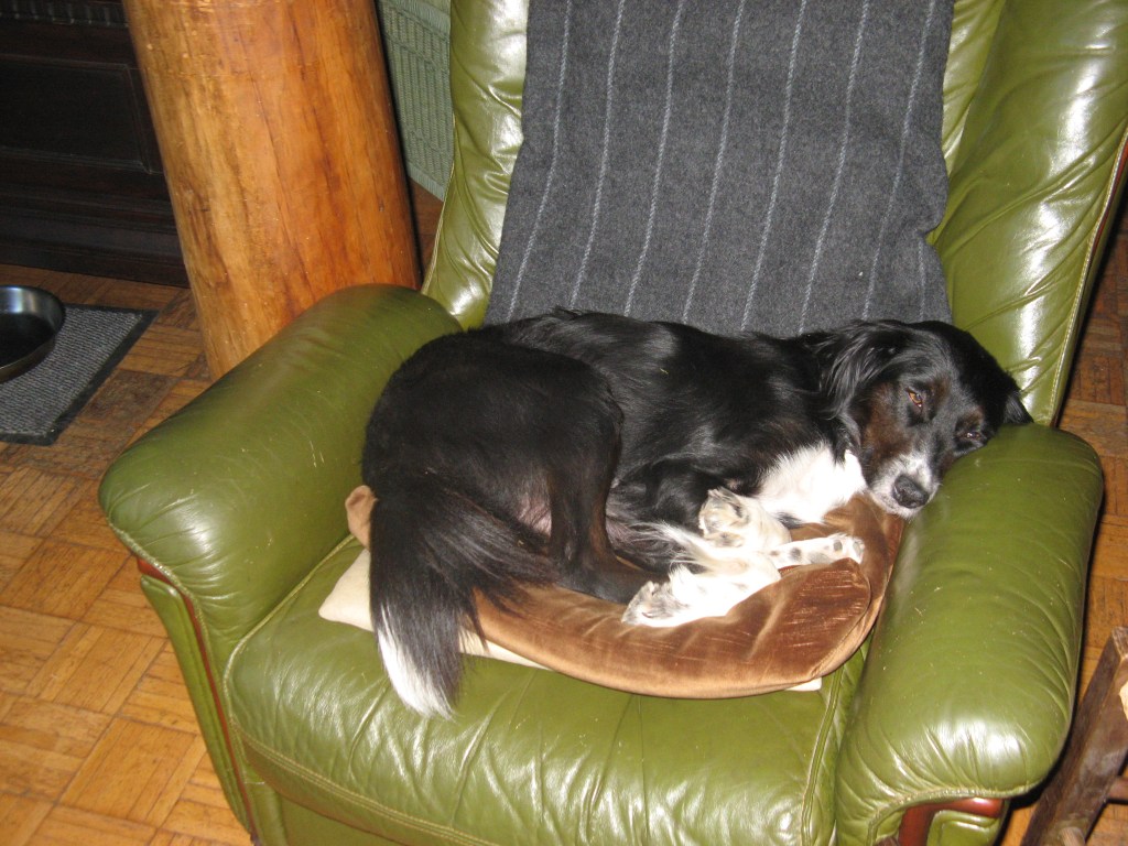 Friends of my granddaughter had a dog they couldn’t keep – so one day the dog came to me. A pretty black and white dog, with imploring brown eyes. I’ve tried to stare her down, but she always wins. When they ask me what breed she is, well I say she’s sort of a border collie. She loves the open fields and woods and no sooner had she arrived than she found a loophole in the fence and was off. My granddaughter followed, worming her way through the opening and we started the hunt. Finally, there she was, down in a ravine where there was a brook and it didn’t take too long to get her to come up and take her home. Dripping wet of course. No one had ever taught her to play, so throwing a stick for her to fetch, or a ball, left her looking at you quizzically, asking you what she was supposed to do. We let her run free outside, until we discovered that she loved to go up to the road above the woods – a highway where people sometimes dropped off their garbage. Aside from garbage not being suitable for dogs, it was dangerous and eventually a run was fenced in and her days of freedom were a thing of the past. Now it was walks with me along the country road.