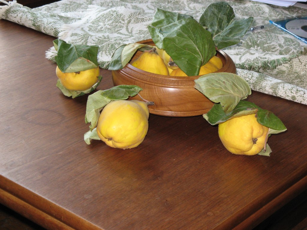 The individually wrapped ruby-red quince paste delights disappear in a couple of days. They are from a woman, who, as a girl, took care of my children when they were small. Her past coincides with that of my children and with mine, the present sees her as a grandmother.
