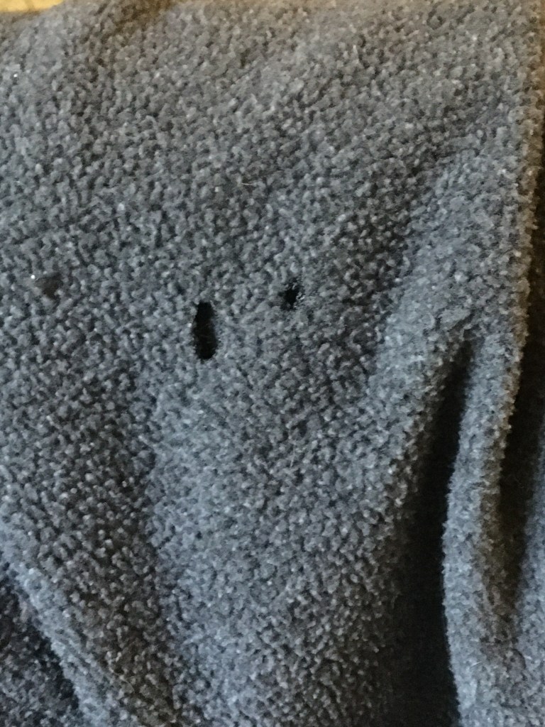 Overnight it had gotten cold. No, it hadn’t snowed although some years it had. It was time to get up – one couldn’t stay in bed all day. She pulled out the first sweat suit she could lay her hands on. Not that she used it for jogging but just to keep warm while the house warmed up. She had several in a box in her closet and wore them over her pjs, at least until it was time to go to town. Then she would pull on her woolen pantyhose and city trousers for she knew her sons didn’t want her walking around the city improperly dressed. Her fingers had already turned white – but she was used to that. Raynaud’s disease – poor circulation. As she pulled on the pants, she noted three small holes in the front. Holes like cigarette burns – and then she remembered.